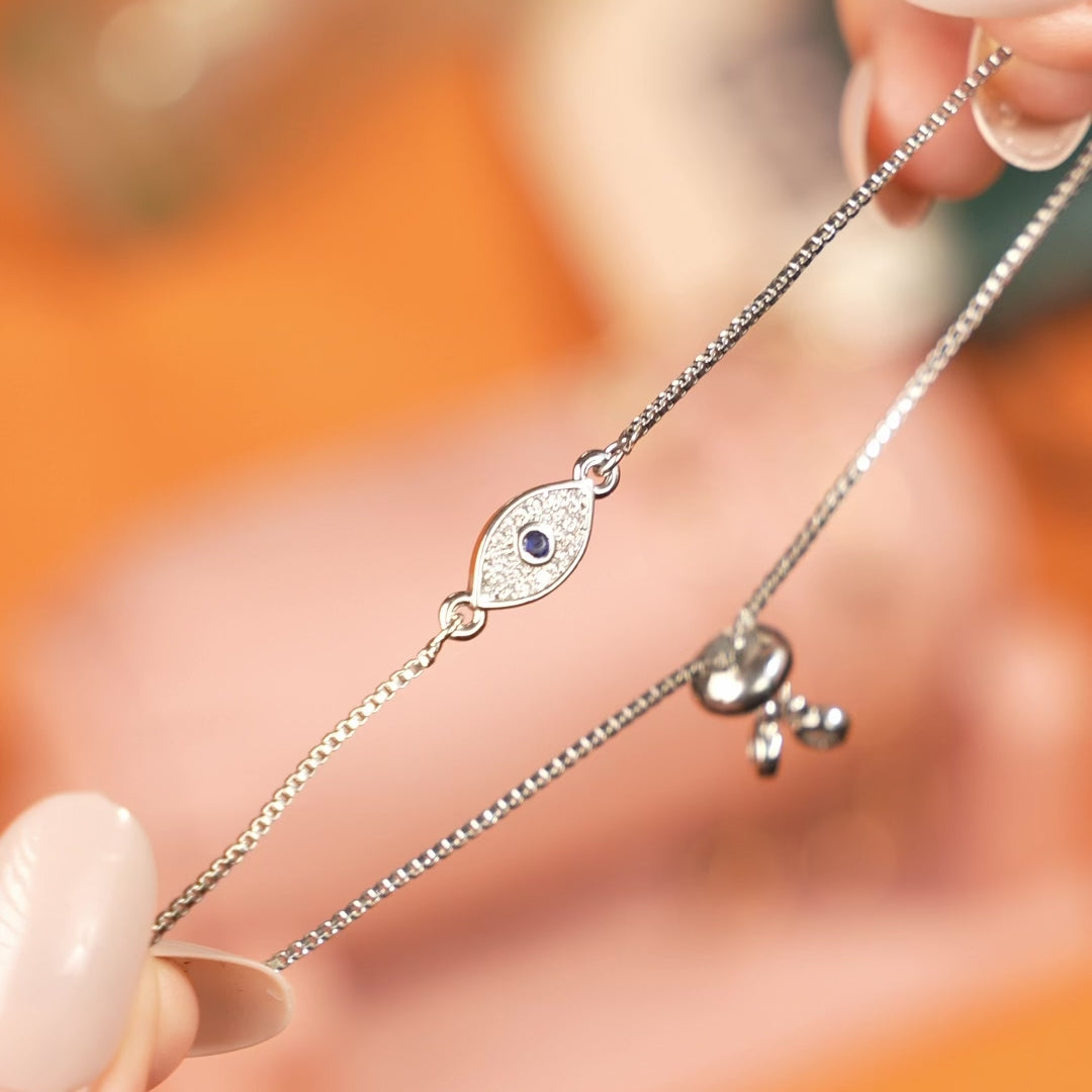 This fine chain bracelet features a small, detailed evil eye charm - a timeless symbol of protection and good vibes. Crafted in sterling silver, it’s lightweight and perfect for stacking or wearing solo as your everyday talisman.