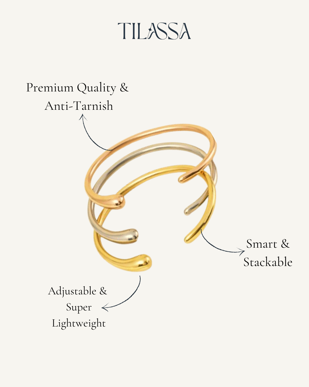 1. Premium Materials: Stainless steel, brass, and sterling silver with luxurious 18K gold plating