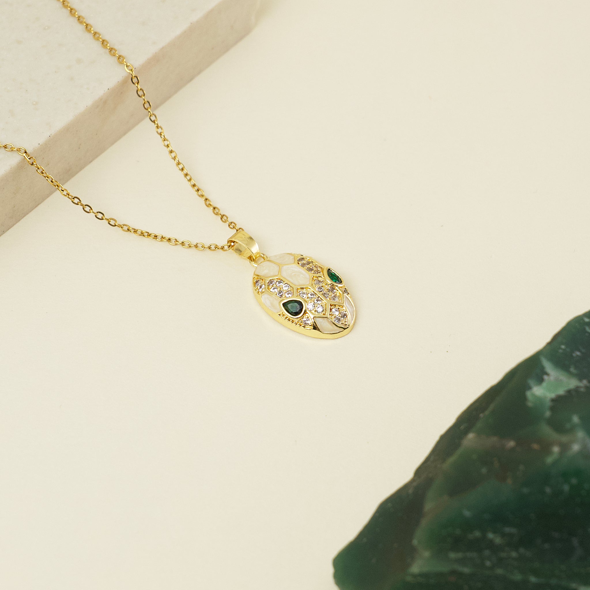 The White Studded Snake Necklace
