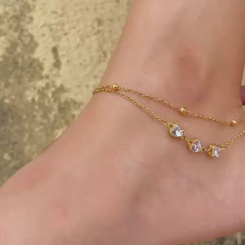 Three times the love. The Trinity Heart Anklet features a trio of polished heart charms that dance effortlessly along a fine chain — a subtle yet meaningful piece made to shine with every step.